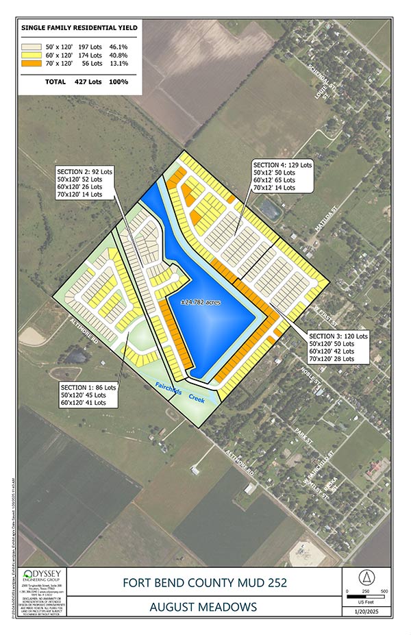 Fort Bend County Municipal Utility District No. 252 is a political subdivision of the State of Texas, located entirely within the City of Needville and Fort Bend County, Texas, approximately 20 miles southwest of the Central Business District of the City of Sugar Land, and approximately one quarter mile from the Central Business District of the City of Needville. The District was created by special act of the 88th Texas Legislature, effective June 13, 2023, codified as Chapter 7975A, Texas Special District Local Laws Code. The District operates under Chapters 49 and 54 of the Texas Water Code, Article XVI, Section 59, and Article III, Section 52 of the Texas Constitution. The District currently consists of 235.901 acres, split into two tracts of land. The Harvest Pointe tract consists of approximately 134.66 acres and is located at the intersection of Highway 36 and Needville Fairchilds Road. The August Meadows tract consists of approximately 101.231 acres and is located approximately 0.6 miles from the intersection of School Street and Altimore Road.